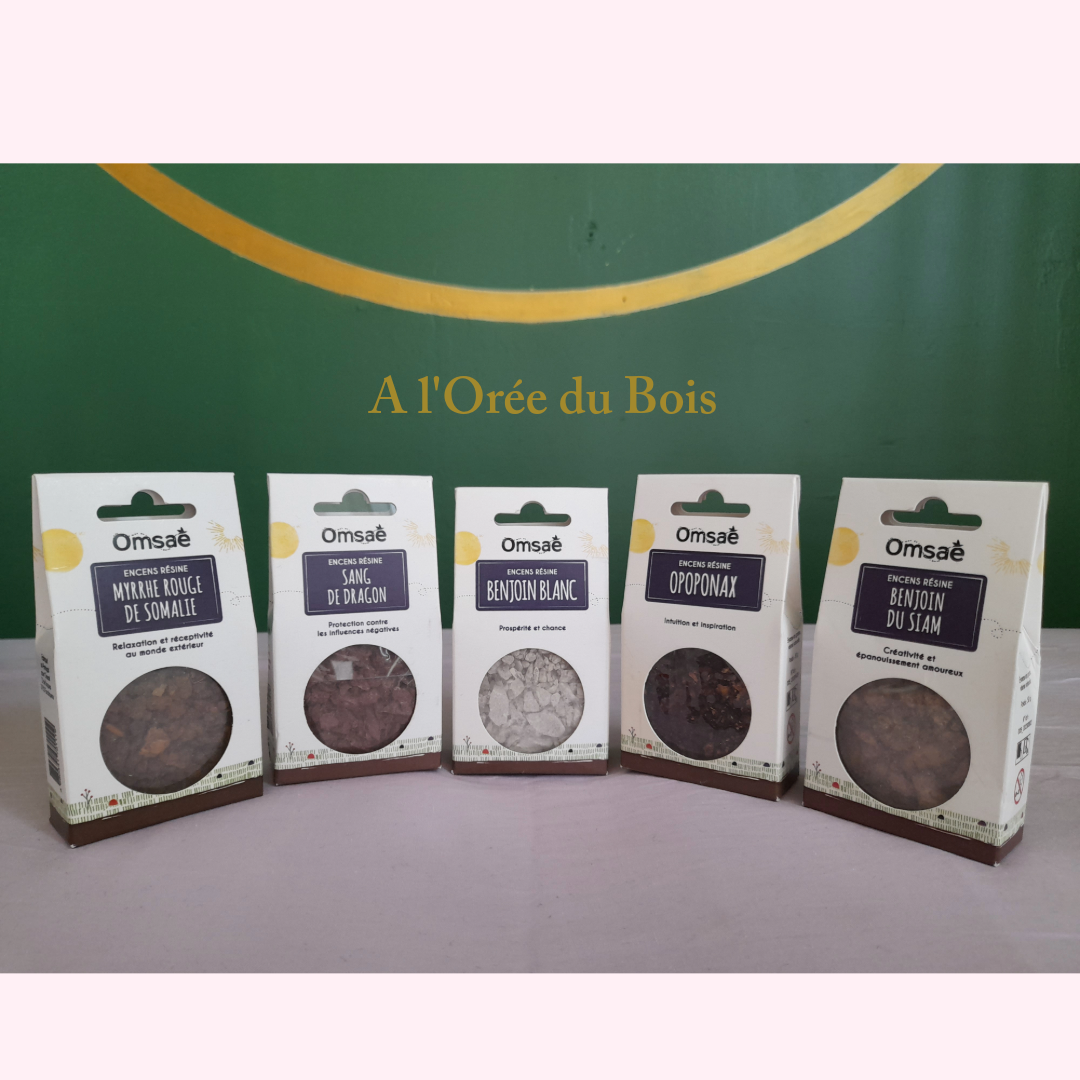 Sang de Dragon, Benjoin Blanc, Opoponax, Myrrhe rouge de Somalie, Benjoin du Siam