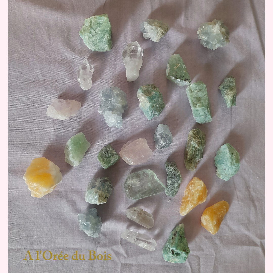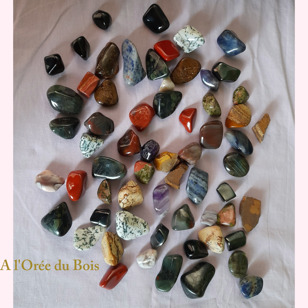 Pierres naturelles brutes ou roulées.